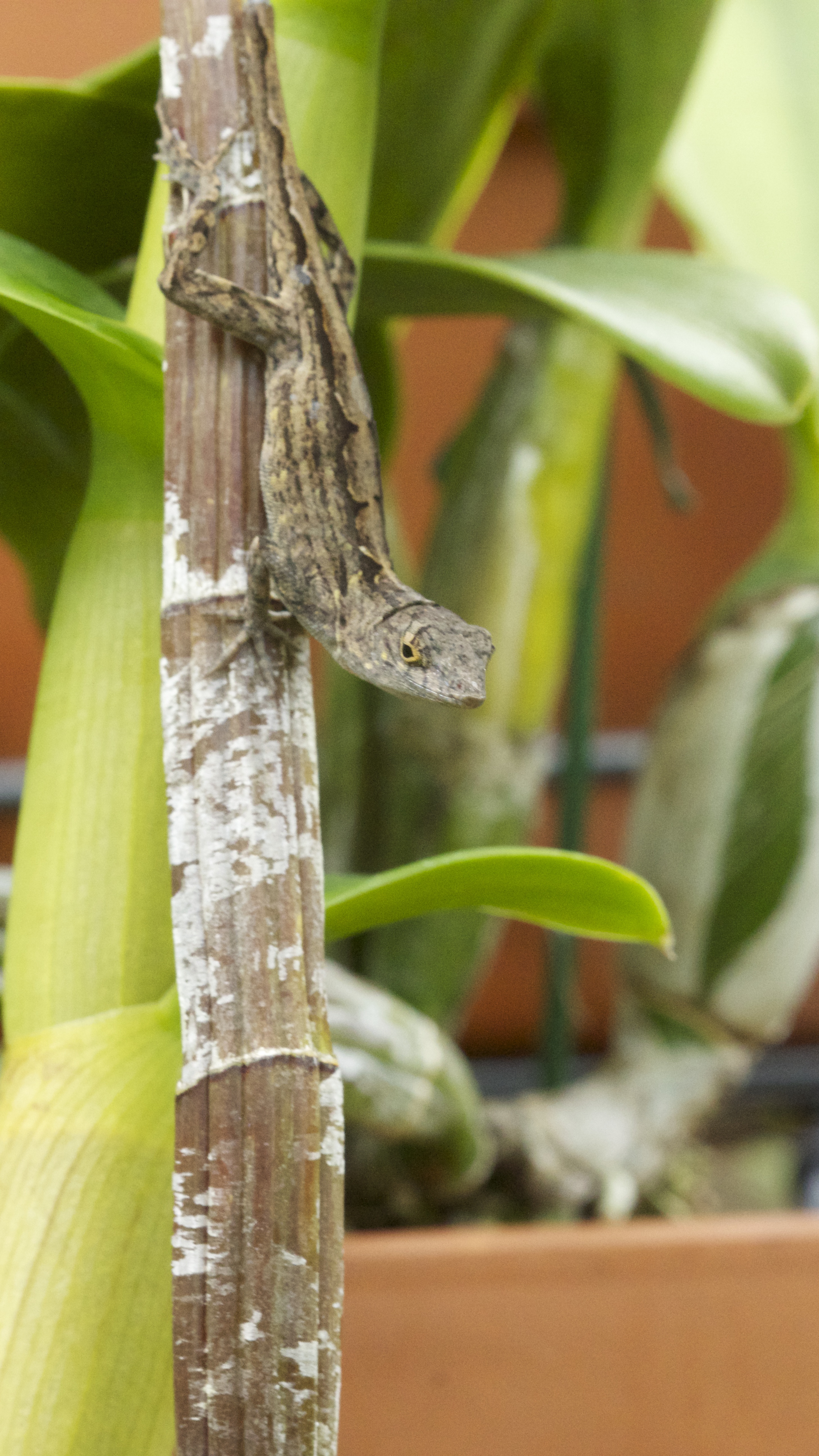 Gecko on orchid. Published September 20 at 2916 × 5184 in Weekly Photo Challenge: From Lines to Patterns Previous Image Lines of orchid plant and pattern on gecko.